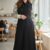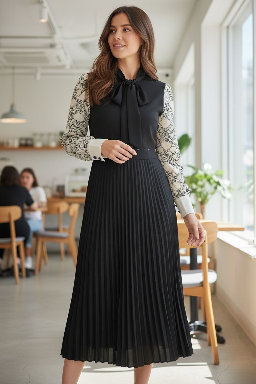 Vestido a media pantorrilla Medio ruedo, manga al codo, con Corbata, plisado